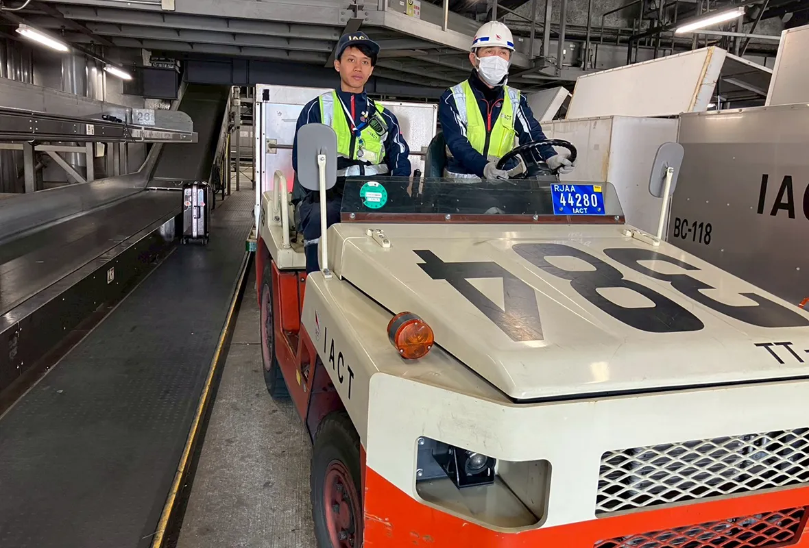 国際線で出発されるお客様の手荷物を大切にお預かりし、行き先ごとに仕分けして航空機へ搬送します。到着便では手荷物が搭載されたコンテナを旅客ターミナルへ運び、ベルトコンベアに載せてお客様のお手元へ届けます。成田空港で乗り継ぐお客様の手荷物についても仕分け・管理し、次便への搬送業務を担います。
